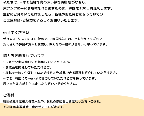 韓国を歩く ご支援・ご協力願いタイトル